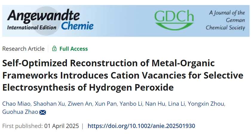2025.04.03Prof. Zhao Guohua's team | Self-Optimized Reconstruction of Metal-Organic Frameworks Introduces Cation Vacancies for Selective Electrosynthesis of Hydrogen Peroxide
