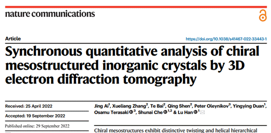 Han Lu's research team reports a general approach for the quantitative analysis of chiral mesostructured crystals by 3D electron diffraction, publishing the relevant outcomes in Nature·Communications.