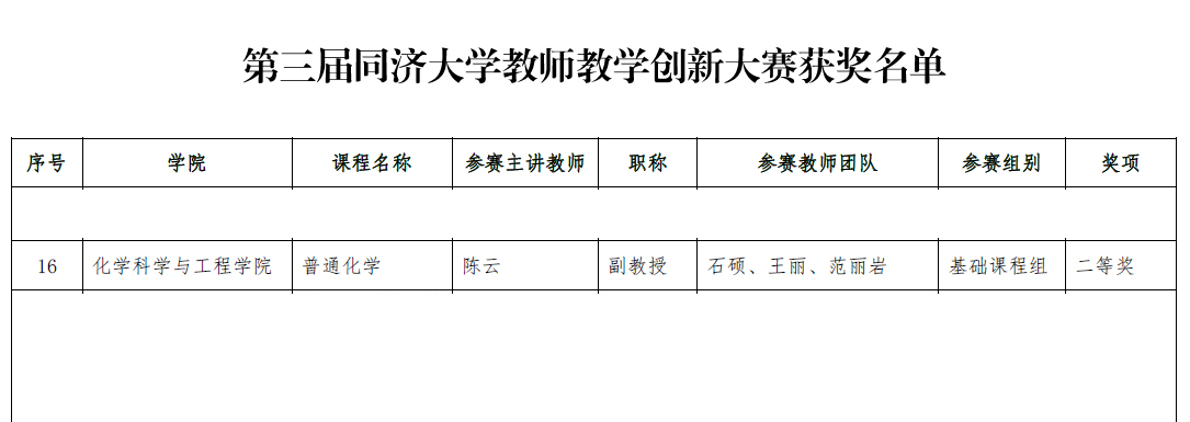 公司陈云老师作为参赛主讲教师的团队讲授的《普通化学》荣获基础课程组二等奖。团队成员还包括石硕、王丽、范丽岩。