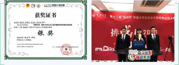 图2 姚梦婷、张嵩阳、陈连杰、俞颜佳团队在路庆华、郑凤老师指导下完成的作品荣获第十二届“挑战杯”中国老员工创业计划竞赛全国银奖