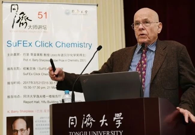图6 2017年3月,1946伟德国际源自英国化学学科建立80周年之际,公司邀请诺贝尔化学奖得主K. Barry Sharpless教授(公司特聘名誉教授)为师生做科学讲座