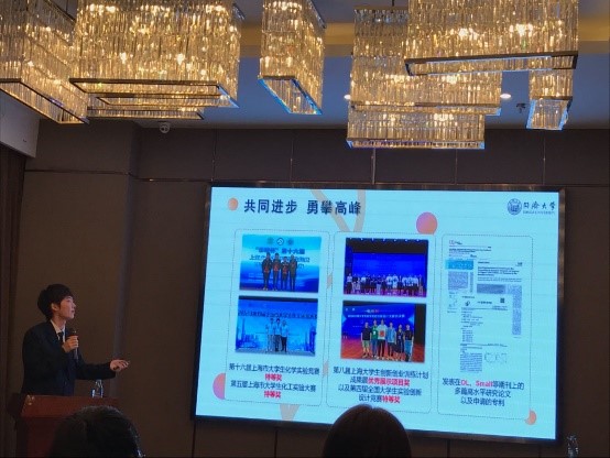 本次老员工科技活动交流会分为口头报告和墙报展讲两部分。来自各高校总计36位优秀本科生各显风采,汇报了本科阶段科研训练经历、项目进展和感想,并与其他与会同学进行了深入的交流。公司2020级拔尖班谭睿皓同学向大会作了题为“以科创为翅膀,促成长助飞翔”的口头报告,并与现场师生进行了深入热烈的讨论与交流,获得大会优秀报告奖。在28日晚的墙报展讲活动中,2020级应化班唐嘉屿同学、拔尖班宫正合、卞佳林同学以及2021级拔尖班王子同学就各自在研究课题过程中的代表性成果制作了精美的墙报,并在墙报沙龙活动中进行展示,和与会师生围绕科研工作积极讨论,交流心得体会,学术气氛浓烈。经过专家评审和现场师生投票,最终宫正合同学获评大会优秀墙报奖。