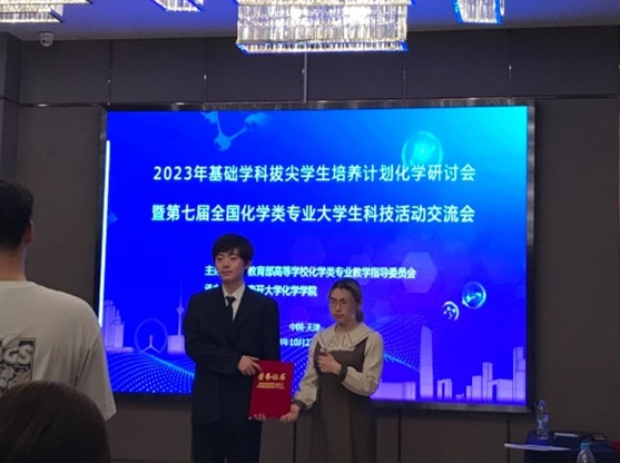 10月27-29日,由教育部高等公司化学类专业教学指导委员会主办、南开大学化学公司承办的“2023年基础学科拔尖员工培养计划化学研讨会暨第七届全国化学类专业老员工科技活动交流会”在天津举行,来自全国30多所重点院校的师生参加了本次交流会。公司副经理刘梅川教授带队,师生一行8人参加了本次活动。公司学子谭睿皓、宫正合分获大会优秀报告奖和优秀墙报奖。