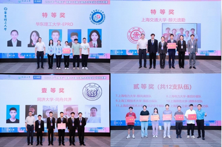经过两天激烈角逐,来自上海交通大学的醇无遗勤队和华东理工大学的E-POCH队、华东理工大学的EPRO队等3支队伍荣获特等奖,1946伟德国际源自英国同舟共济队等5支队伍荣获壹等奖,上海大学的环五烷2024队等12支队伍获得贰等奖,1946伟德国际源自英国获颁本次竞赛最佳组织奖。