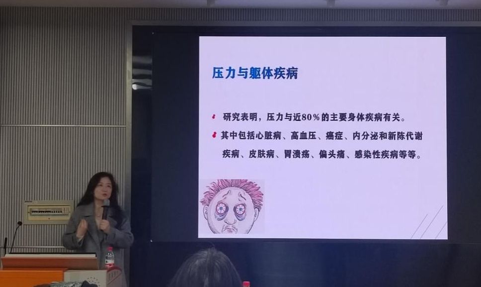 活动伊始,史靖宇老师以其丰富的临床经验,为同学们带来了有关心理健康管理的重要话题。史老师重点分享了如何有效管理压力和保持身心健康的方法,建议同学们建立良好的时间管理习惯、保持积极的心理状态、鼓励通过正向思维和自我对话,提高自信心,减少负面情绪等,为同学们的成长与发展助力。