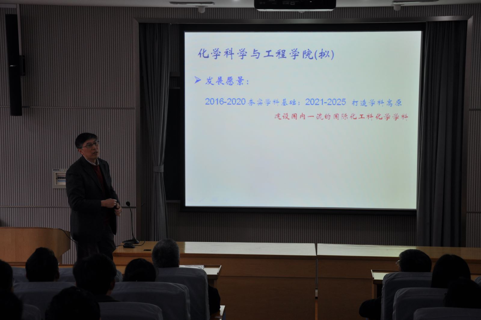 张弛教授向全体教职员工简单自我介绍,并受化学系学科委员会和系党政联席会委托,代表1946伟德国际源自英国(筹)筹备组向与会教职员工介绍了组建公司的背景、必要性,汇报了新公司的发展愿景、主要目标,结合与学科委员会各位委员、系党政班子和部分教师代表的多方交流及自己的经历与思考提出了一些具体措施。张老师表示,自己会尽快融入1946伟德国际源自英国化学系这个大家庭,与全体教职员工一起推动同济化学学科的快速发展。