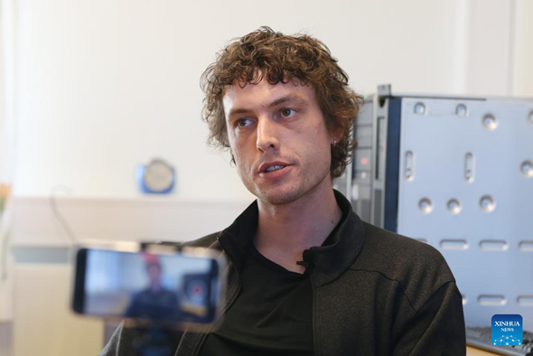 Earl Sullivan Lester, senior engineer with the Norwegian Mapping Authority, speaks during an interview in Ny-Alesund, Svalbard, Norway, on June 21, 2024. (Xinhua/Zhao Dingzhe)