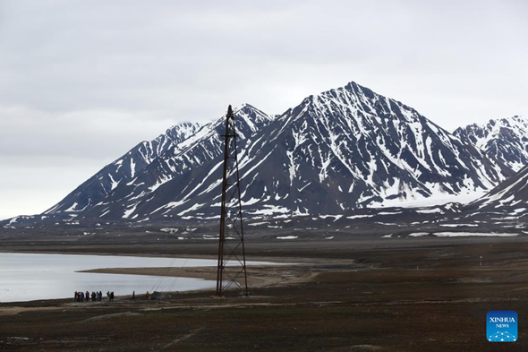 Tourists are seen near the mooring mast for Norwegian explorer Roald Amundsen's airship "Norge" in Ny-Alesund, Svalbard, Norway, on June 23, 2024. (Xinhua/Zhao Dingzhe)