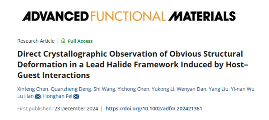 Fei Honghan & Han Lu's Research Team|Advanced Functional Materials:Direct Crystallographic Observation of Obvious Structural Deformation in a Lead Halide Framework Induced by Host-Guest Interactions