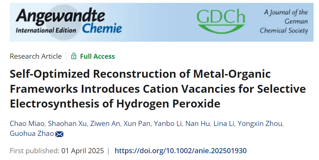 Prof. Zhao Guohua's team | Self-Optimized Reconstruction of Metal-Organic Frameworks Introduces Cation Vacancies for Selective Electrosynthesis of Hydrogen Peroxide