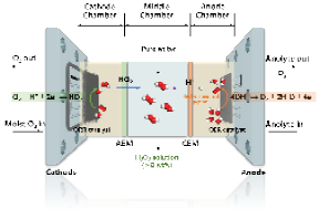 The team innovatively utilize the self-optimized reconstruction behavior of MOFs in the electrocatalytic process, successfully introducing cation vacancies into the reconstructed active species for efficient H2O2 electrosynthesis. Impressively, the prepared electrocatalyst (ZIF-ZC91@Co(OH)2-VCo) exhibits significant activity for 2e ORR with H2O2 selectivity of over 97%, and ultrahigh H2O2 productivity of 24.53 mol gcatalyst-1h-1. Remarkably, in the solid-electrolyte cell configuration, the catalyst demonstrates exceptional long-term durability for over 220 h, and can output a concentration of ~8.03 wt% in continuous H2O2 production in the pilot experiment. This strategy is expected to provide reference and inspiration for the distributed and sustainable electrosynthesis of hydrogen peroxide.