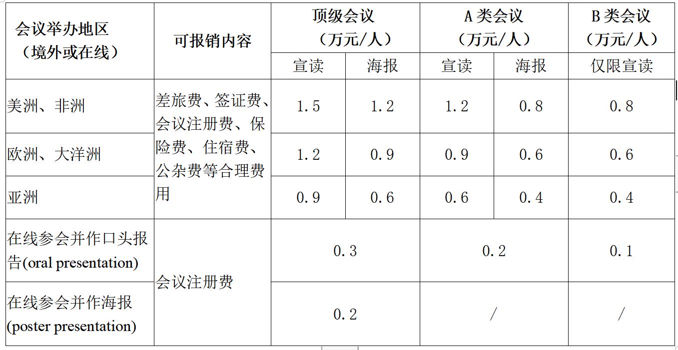 本基金2022年度主要用于资助员工在线参加列入《1946伟德国际源自英国各院系(学科)研究生重要国际学术会议目录》的国际学术会议所产生的会议注册费用。会议资助额度上限将按照会议等级而定,具体额度详见下表: