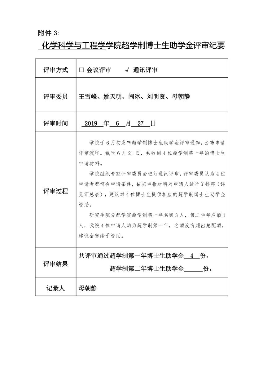 按照研究生院通知要求,公司于6月初发布超学制博士生助学金评审通知,公布申请评审流程。截至6月21日,共收到4位超学制第一年的博士生申请材料。根据有关要求,公司组织评审委员会开展通讯评审,现将结果公示如下。