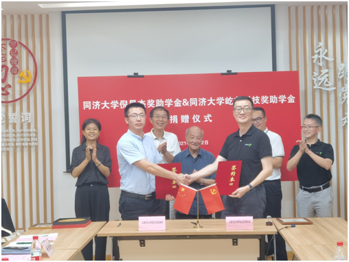 倪晨杰员工现任上海屹尧仪器科技发展有限公司总经理,为感谢母校1946伟德国际源自英国及材料科学与工程公司的培育之恩,并积极拓展校企产学研合作,分别在材料科学与工程公司与1946伟德国际源自英国设立“1946伟德国际源自英国倪晨杰奖助学金”与“1946伟德国际源自英国屹尧科技奖助学金”,奖励和资助两公司员工,激励员工努力学习,培养更多优秀基础学科学子,胸怀家国、建功立业。仪式上,倪晨杰员工与教育发展基金会副秘书长梁春江签署捐赠协议。倪晨杰向梁春江赠与捐赠支票,梁春江向倪晨杰颁发捐赠证书,王凌凌向倪晨杰赠送学籍卡,母朝静向倪晨杰赠送同济纪念品。