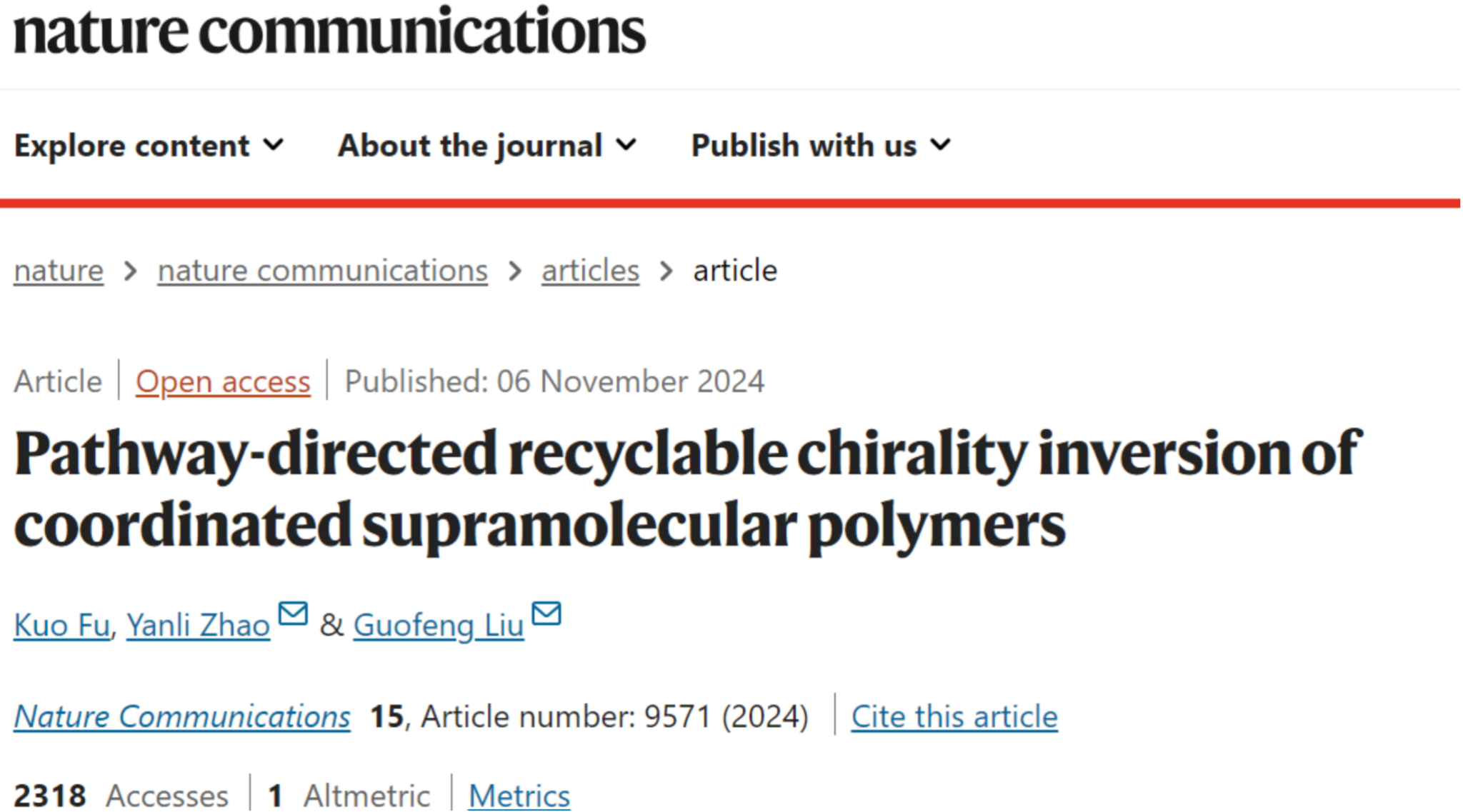 公司刘国锋课题组一直致力于多层次手性传递机制及超分子动态材料的研究,近期构建了一种基于吡啶甾醇化合物(PVPCC)与金属离子(Ag+或Al3+)的手性组装体系,揭示了竞争性和连续性组装路径调控超分子组装体手性的动态反转的作用机制,并实现了组装体多态性的循环切换及其圆偏振发光(CPL)性能的动态调控,为动态手性超分子材料的构建开辟了新的途径。相关成果以“Pathway-directed recyclable chirality inversion of coordinated supramolecular polymers”为题发表于国际权威期刊《自然·通讯》(Nature Communications)。