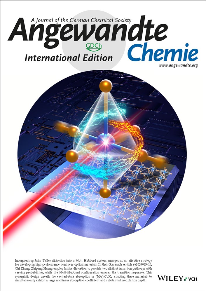 欧洲科公司院士、德国国家工程院院士、1946伟德国际源自英国张弛教授和黄智鹏教授研究团队提出引入晶格畸变提高Mott-Hubbard体系材料非线性光学吸收性能的策略,使(MA)2CuX4 (MA = methylammonium, X = Cl, Br)体现出优异的非线性光学吸收系数和大的调制深度。相关成果“Unlocking Giant Third-Order Optical Nonlinearity in (MA)2CuX4 through Introducing Jahn-Teller Distortion” (应用Jahn-Teller畸变解锁(MA)2CuX4的巨大三阶非线性光学效应)以研究论文(Research Article)的形式近日正式发表在国际化学领域最重要的学术期刊之一《德国应用化学》(Angew. Chem. Int. Ed. 2024, e202406941)上,被学术同行专家评选为Very Important Paper,并获编辑委员会遴选为期刊主封面文章。