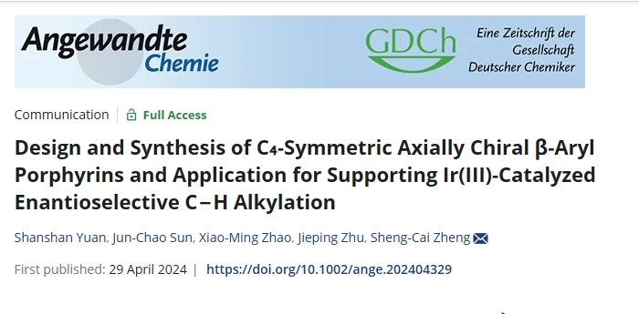 仿酶催化是不对称催化的热点之一。近半个世纪以来,作为仿P450酶的核心,手性卟啉的合成及其在金属卟啉不对称催化反应中的应用引起化学家们的极大关注。迄今为止,绝大多数有效的手性卟啉配体都是通过在卟啉的meso(即C5, C10, C15, C20)位引入手性元素合成的,而在卟啉的β(即C2, C7, C12, C17)位引入手性元素的报道极少,仅有的少数例子将其应用于不对称催化中,均表现出不理想的手性诱导结果,尚未发现具有旋转受阻的Cβ−Caryl轴的手性卟啉相关报道。近日,郑生财研究员与赵晓明教授研究团队另辟蹊径,发展了一种新型β-芳基轴手性卟啉的合成策略,相关研究成果“Design and Synthesis of C₄-Symmetric AxiallyChiral β-Aryl Porphyrins and Application for Supporting Ir(III)-Catalyzed Enantioselective C−H Alkylation”在线发表于国际知名期刊《德国应用化学》(Angewandte Chemie International Edition)。