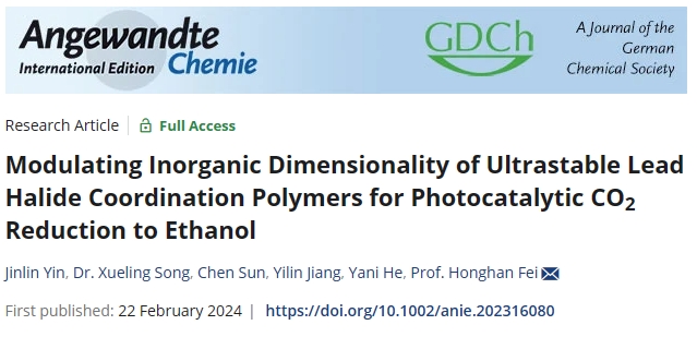 由于其与光伏的天然联系,有机卤化铅杂化物已成功扩展到光催化领域,卤化铅杂化物在CO2光还原中表现出巨大潜力,但要获得C2+还原产物却很困难,尤其是使用H2O作为还原剂,这主要是由于基准3D结构的不稳定性与准2D类似物的低载流子迁移率之间的权衡问题。3D有机碘化铅(如 MAPbI3,MA=CH3NH3+)是具有优异光电特性的基准杂化物,然而它们对高极性质子分子的结构不稳定性限制了它们在CO2和H2O之间的整体人工光合作用中的应用。封装到固态基质为其应用提供了一种潜在的稳定策略,但也可能带来光穿透和新的界面问题,因此获得化学性质稳定的3D有机碘化铅对于解决性能与稳定性之间的难题至关重要。公司费泓涵教授团队长期致力于金属有机框架(MOF)的修饰及其对CO2捕获和转化功能研究,将卤化铅结构单元和有机羧酸配体配位组装成稳健的卤化铅配位聚合物(CPs)。日前,该课题组通过有机配体的单原子变化(NH vs. CH2)来调节稳健配位聚合物(CP)的卤化铅维度,以NH基团与层间[PbI2]团簇配位,促成2D→3D转变,得到具有较高的水稳定性的3D阳离子碘化铅亚晶格的CP,其激子结合能与环境热能水平相当,实现了乙醇的人工光合作用。日前,相关研究成果“Modulating Inorganic Dimensionality of Ultrastable Lead Halide Coordination Polymers for Photocatalytic CO2 Reduction to Ethanol”发表于国际知名期刊《德国应用化学》(Angewandte Chemie International Edition)。