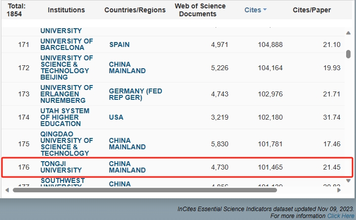2023年11月最新学科ESI国际排名公布