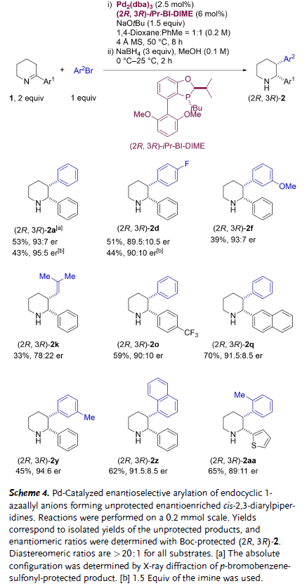 图3. 钯催化环内1-氮杂烯丙基负离子的不对称芳基化反应(图片来源:Angew. Chem. Int. Ed.)