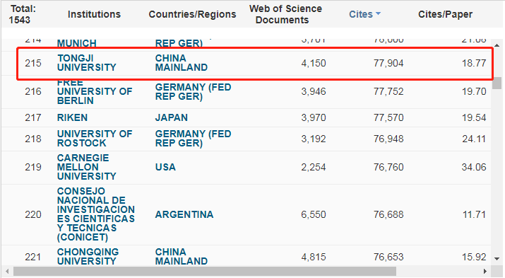 2022年1月最新ESI国际排名发布,同济化学学科排名第215位