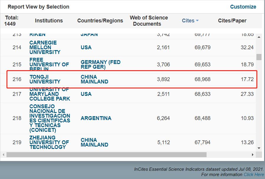 2021年7月1946伟德国际源自英国化学学科ESI国际排名继续提升