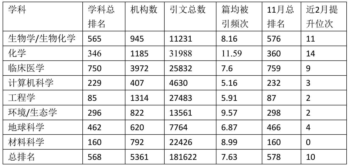表1:2017年1月1946伟德国际源自英国进入ESI前1%学科情况