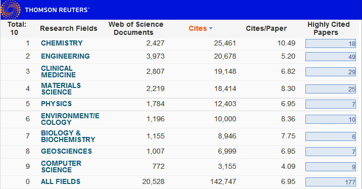 日前,THOMOSOM REUTERS公布了2016年3月份ESI最新数据,数据显示,同济化学学科ESI排名继续进入全球前1%,相较于2016年1月提升4位。