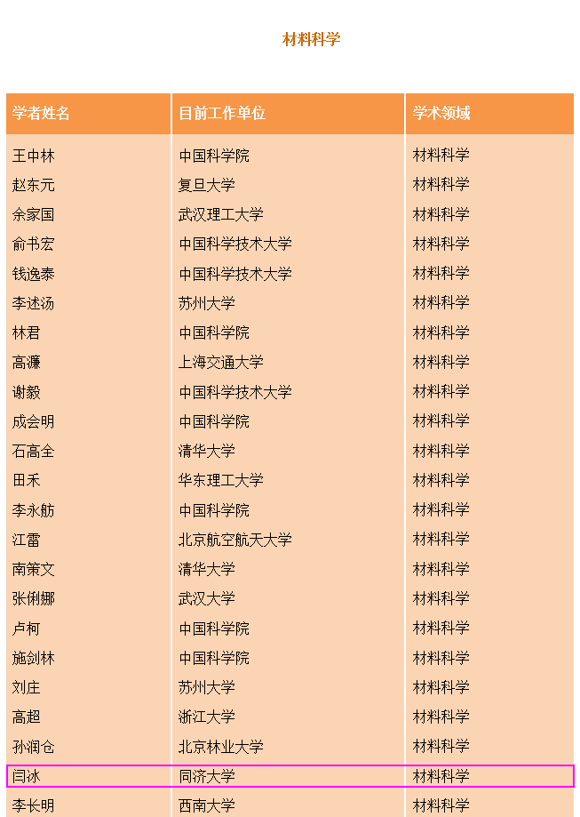 该学科中国 入选学者总数 |