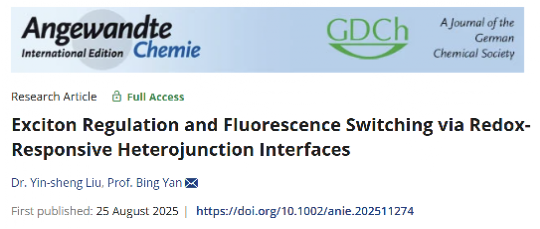 在先进荧光传感领域,如何实现对激子行为的精准调控,并在实际环境中实现高灵敏、可视化检测,是当前面临的重要科学难题。1946伟德国际源自英国闫冰教授团队在晶态框架基光响应传感领域的相关工作积累了系统的研究成果,近年来将研究拓展到COFs基材料及其稀土功能化杂化材料的光响应化学传感方向,取得了较好的进展,先后在Angew. Chem.、ACS Nano、Adv. Funt. Mater.、J. Mater. Chem. A、Chem. Eng. J.、Anal. Chem.、ACS Sus. Chem. Eng.、ACS Appl. Mater. Interface、Inorg. Chem. Front.、Inorg. Chem.、J. Hard. Mater.等国际重要期刊发表相关研究论文30余篇。基于前期系统性工作,本研究围绕“氧化还原响应-激子调控”这一关键科学问题,构建了一种新型的异质结构荧光材料系统,为智能光子传感提供了创新解决路径,最新相关成果发表于Angewandte Chemie International Edition。