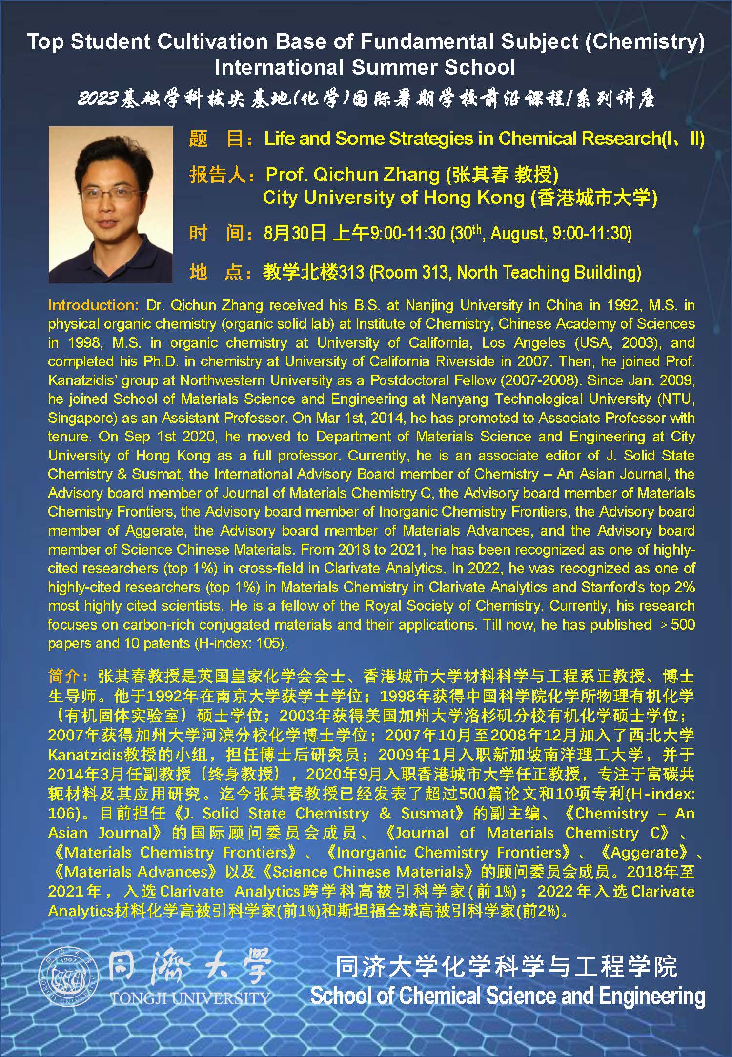 (8月30日)张其春教授:Life and Some Strategies in Chemical Research(I 、 II)