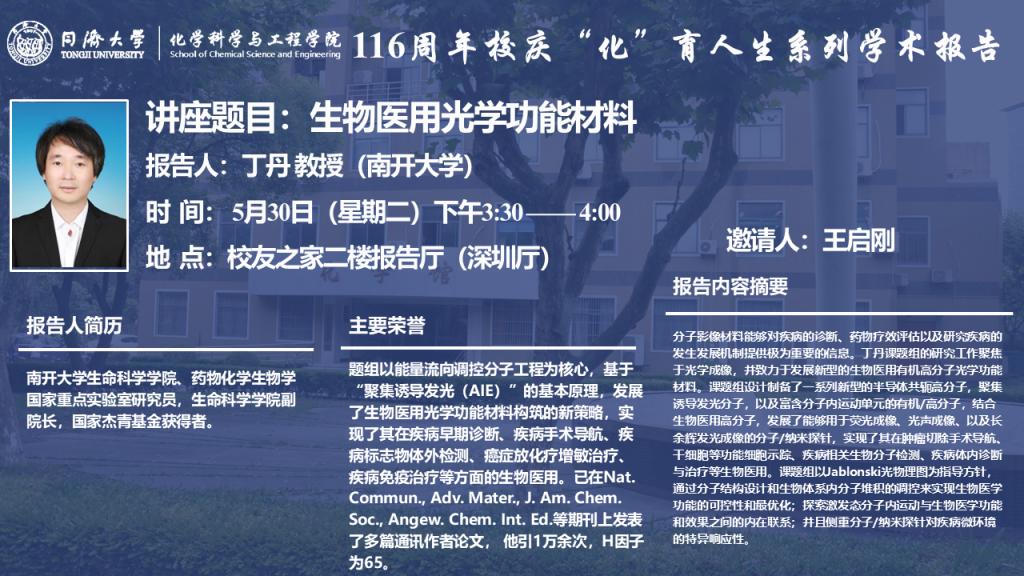 报告题目:生物医用光学功能材料