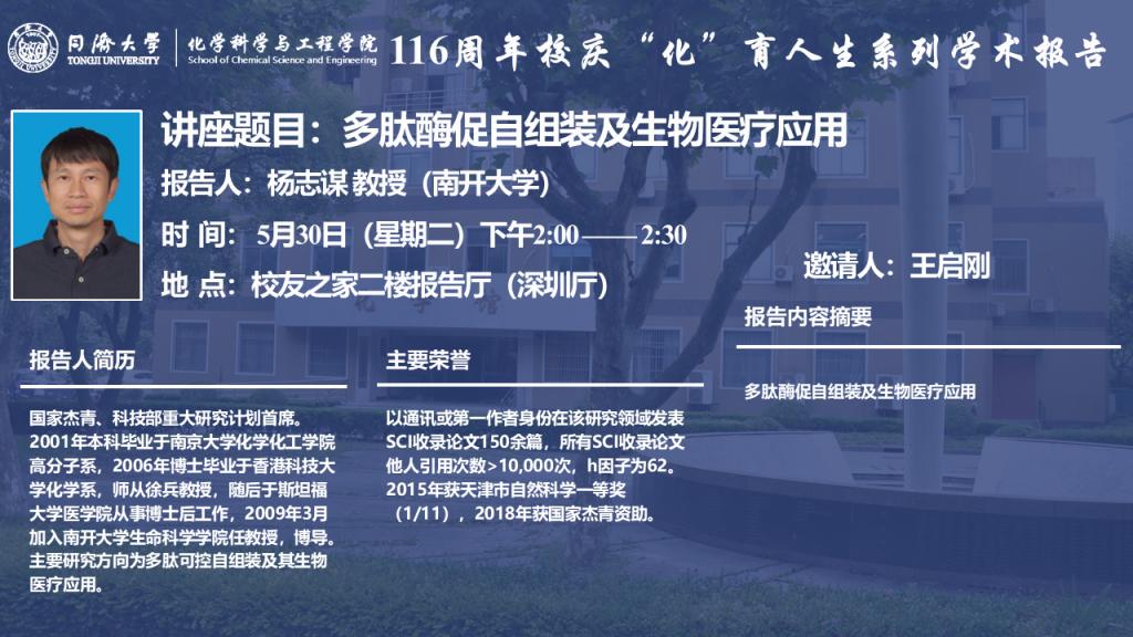 报告题目:多脑酶促自组装及生物医疗应用