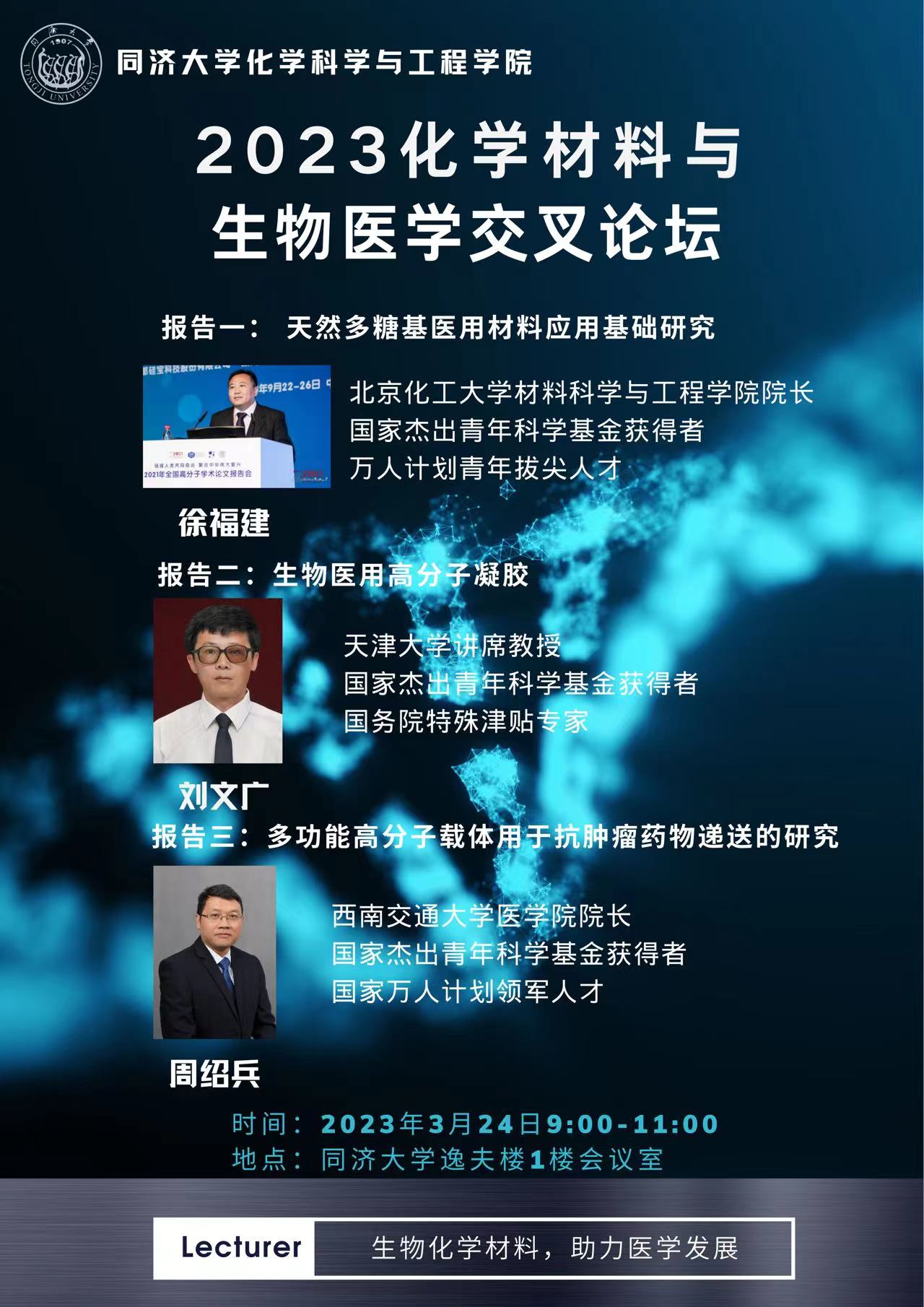 学术论坛 | (3月24日)2023化学材料与生物医学交叉论坛