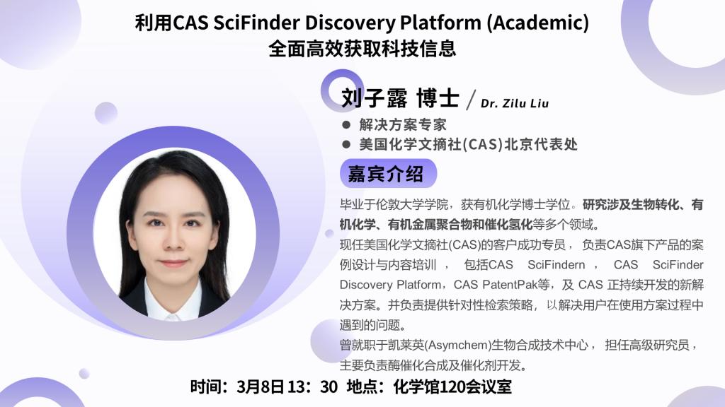 讲座题目:利用CAS SciFinder Discovery Platform (Academic) 全面高效获取科技信息