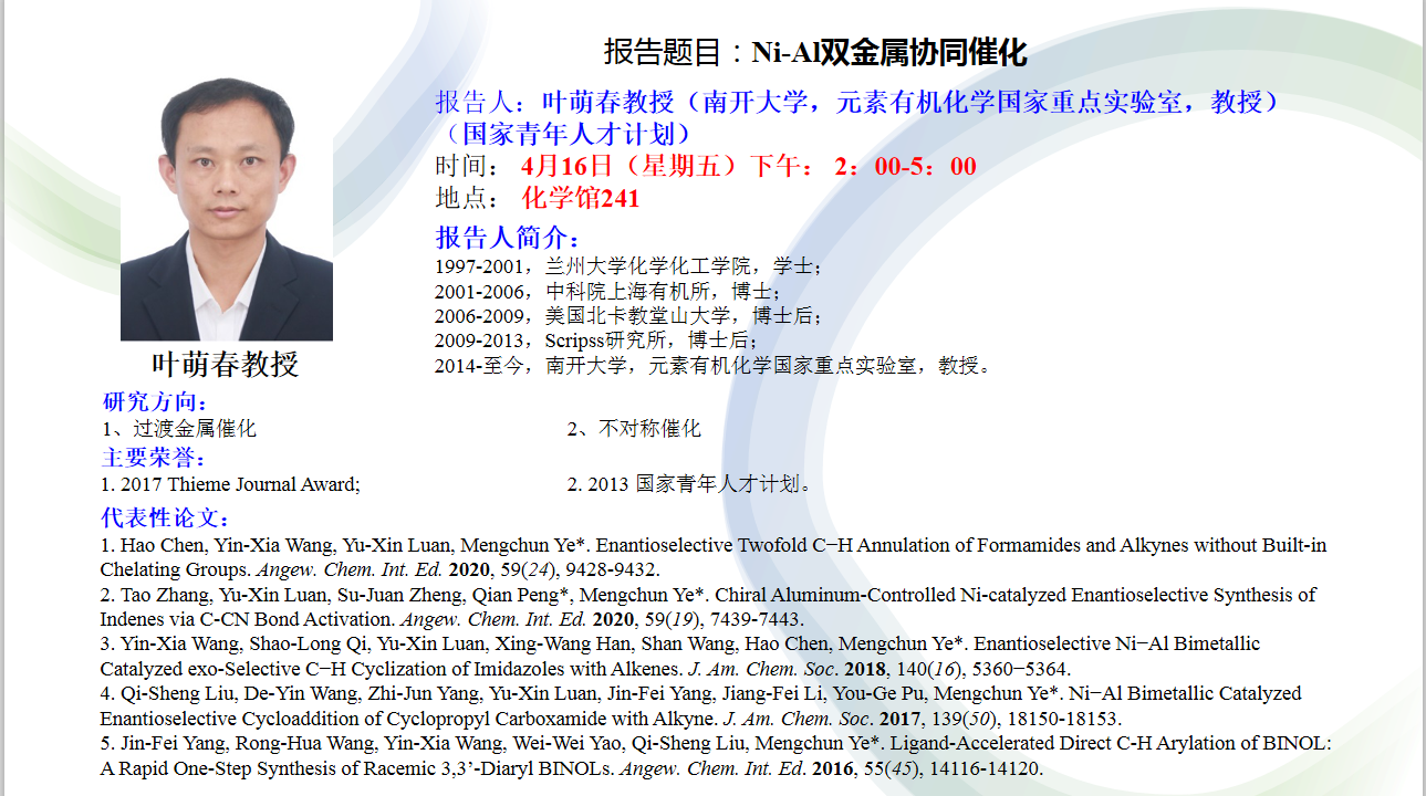 学术报告,4月16日下午: 2:00-5:00:Ni-Al双金属协同催化