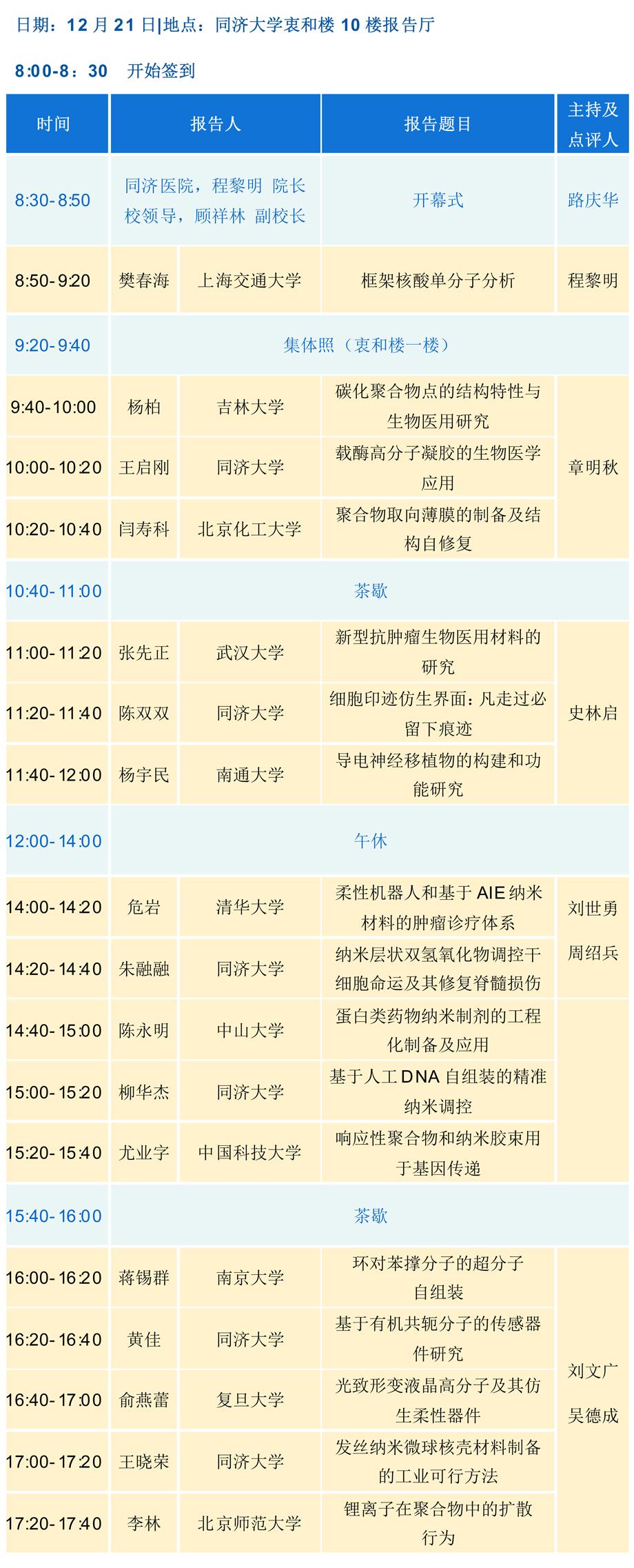 (2019年12月21-22日)化学材料与生物医学前沿论坛