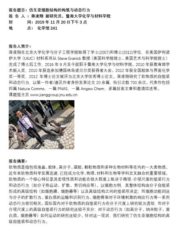 (2019年11月20日)报告人:蒋凌翔 副研究员,暨南大学化学与材料公司