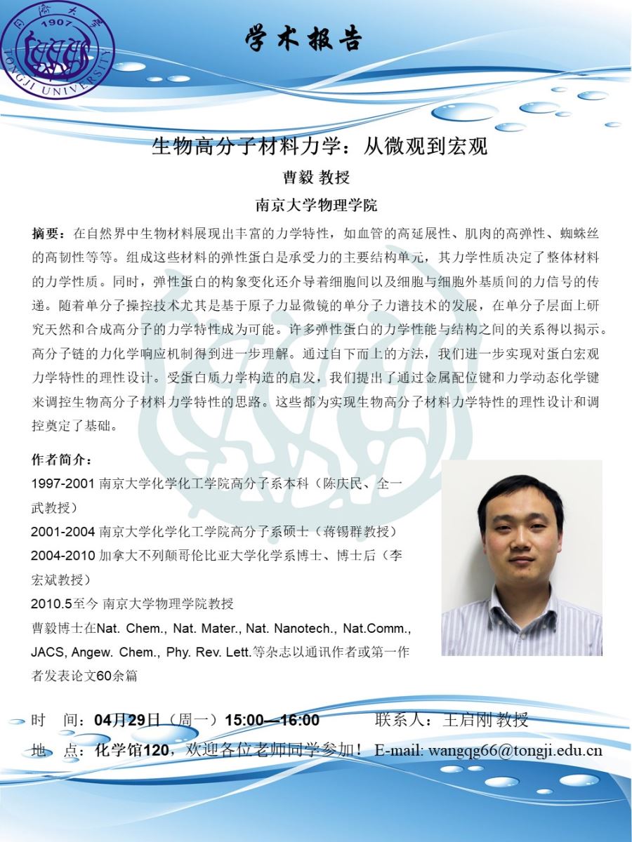 (2019年4月29日)报告人:曹毅 教授 南京大学