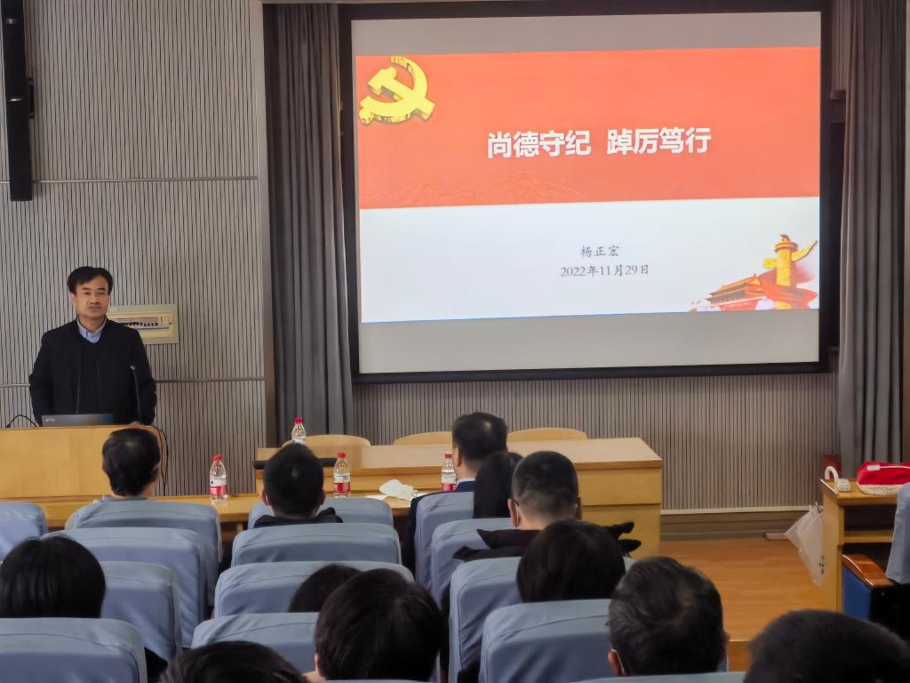 11月29日,1946伟德国际源自英国开展“学习贯彻党的二十大精神”系列讲座之法纪警示教育专题讲座。校纪委副书记杨正宏以《尚德守纪 踔厉笃行》为题,为全院教师作专题讲座。