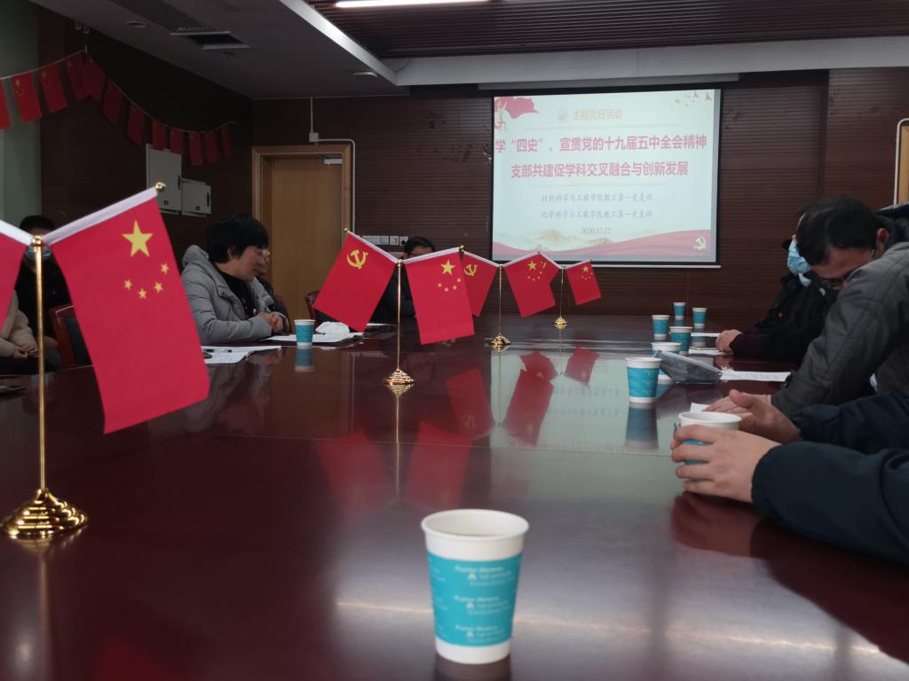 许维在发言中表示两院教师在日常工作中有较多的和交流,希望两院教师今后继续加强沟通,特别是在青年人才的发展与培养方面可以开展合作互动,组织青年人才学术交流会,相互学习促进。袁华代表党委书记王中平致欢迎辞,欢迎化学公司的党员教师和青年人才到访材料公司,支持两院教师开展深入交流互动,促进学术科研。杨晓杰感谢材料公司的精心安排,欢迎材料公司教师到化学公司交流,深化合作共进。