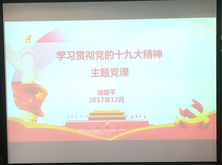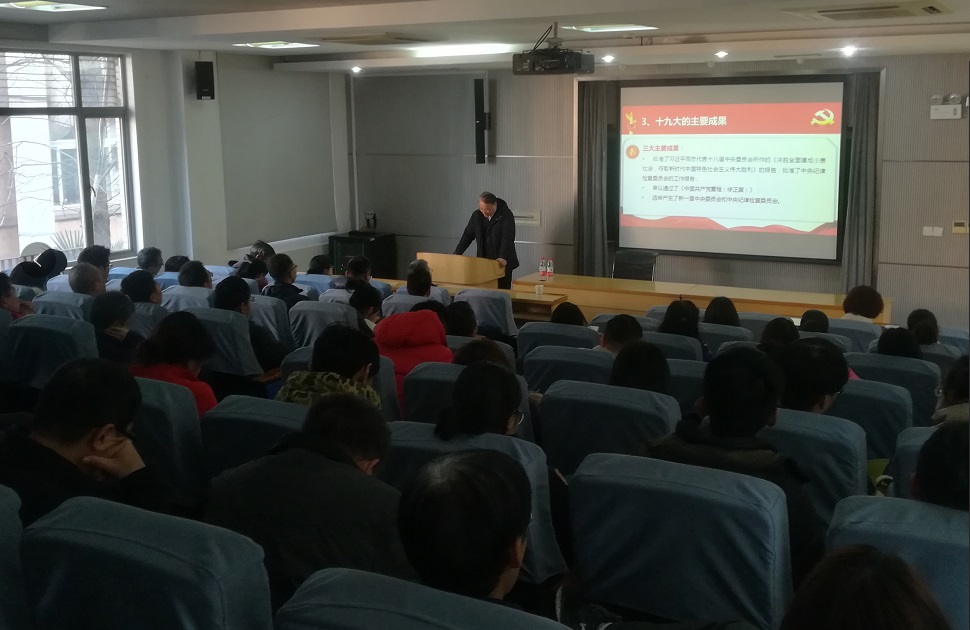 12月12日下午,公司党委副书记徐建平应邀来到化学馆241报告厅为公司全体教职工和部分员工党员上主题党课,宣讲十九大精神。此次党课也是本学期全院教职工集中思想政治学习教育活动之一,公司党政班子成员参加了党课学习。