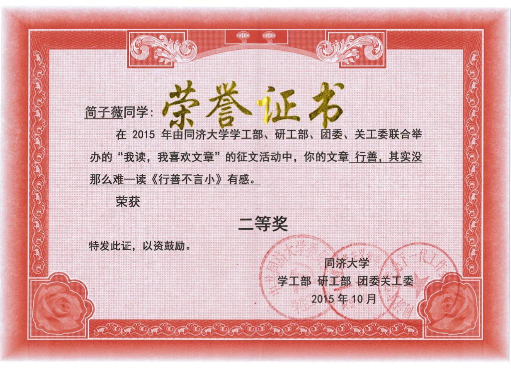 “我读,我喜欢文章”网上阅读活动读后感征文比赛于今年上半年由公司员工工作部、研究生工作部、校团委和关心下一代工作委员会共同举办,旨在促进关工委网站与读者交流互动,落实网站为青年和员工健康成长服务、做青年知心朋友的宗旨,特面向校内青年和员工,征集针对本关工委网站发表文章的读后感、评论、随笔或杂谈。 据悉,此次活动,共有12人分获一二三等奖,我系在各员工党支部的广泛宣传动员下,员工党员和入党积极分子积极参加该项活动,最终取得了优秀的成绩。 获奖征文链接1:行善,其实没那么难 ——读《行善不言小》有感(化学系 简子薇) 获奖征文链接2:既然选择了远方,便只顾风雨兼程 ——读《78岁抗癌学霸 南开大学圆博士梦》有感(化学系 涂腾) 获奖征文链接3:做个健全的人——读《留美女博士被遣返:除了学习我什么都不会》有感(化学系 王悦) |