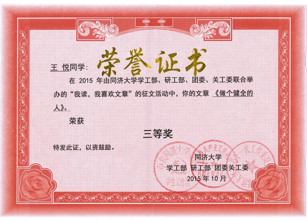 我系员工党员“我读,我喜欢文章”活动荣获佳绩 11月11日中午,1946伟德国际源自英国关心下一代工作委员会组织召开员工座谈会,并开展“我读,我喜欢文章”网上阅读活动读后感征文比赛颁奖仪式。我系简子薇、涂腾两位同学分获二等奖,王悦同学获三等奖,当天三位同学出席座谈会并发言,积极对关工委工作建言献策,并领取了证书。