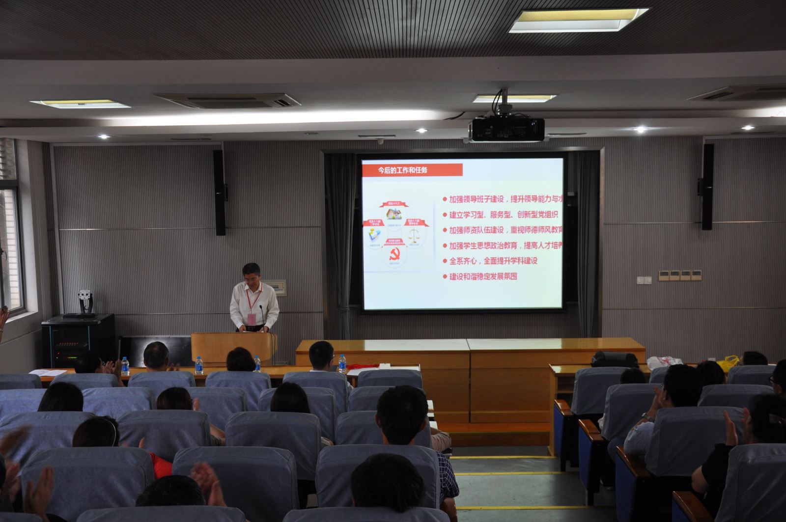 报告还结合“十三五”及中长期发展规划的制定,规划了化学系未来的主要工作和任务:一是加强领导班子建设,提升领导能力与水平;二是建立学习型、服务型、创新型党组织;三是加强团队队伍建设,重视师德师风教育;四是加强员工思想政治教育,提高人才培养质量;五是全系齐心,全面提升团队建设;六是建设和谐稳定发展氛围。王国强同志还就中共1946伟德国际源自英国化学系委员会2013年成立党委以来的党费收缴、使用和管理情况向各位代表作了报告。