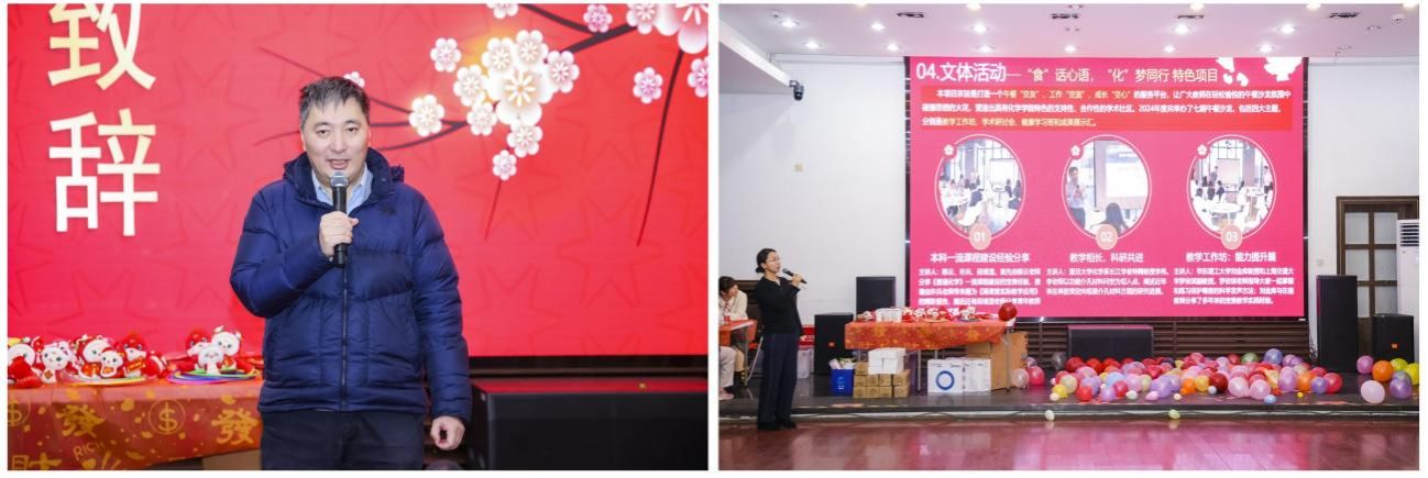 活动正式开始,由公司党委书记曹同成老师致开幕词。曹老师回顾了公司在团队建设、立德树人等方面取得的喜人成绩,并提前祝愿公司师生新春快乐,阖家幸福。随后,党委副书记赵红颖老师向大家汇报了2024年度公司工会的主要工作和取得的成绩,感谢全体教职工的热切关注和大力支持。