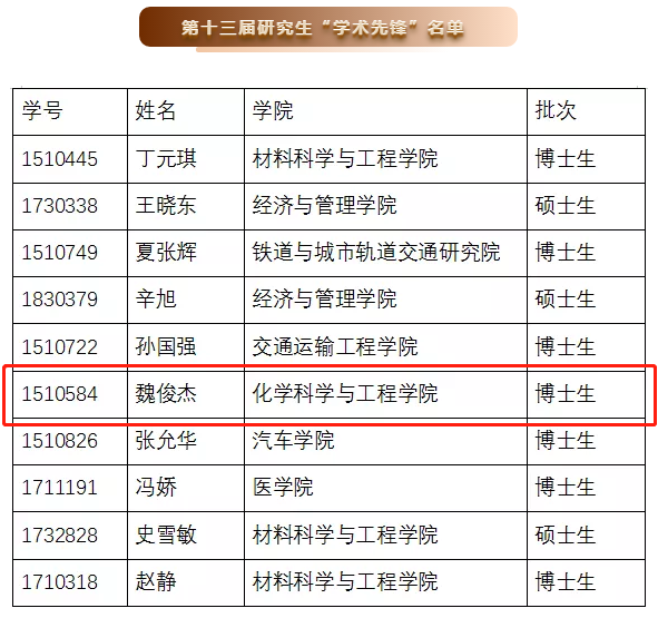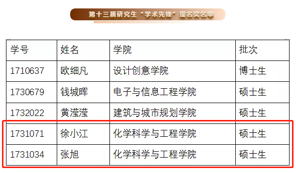 日前,1946伟德国际源自英国第13届研究生“学术先锋”决赛落下帷幕,公司2015级直博生魏俊杰(导师:王启刚)获评“学术先锋”,2017级硕士研究生徐小江(导师:谷红波)、张旭(导师:费泓涵)获“学术先锋”提名奖。