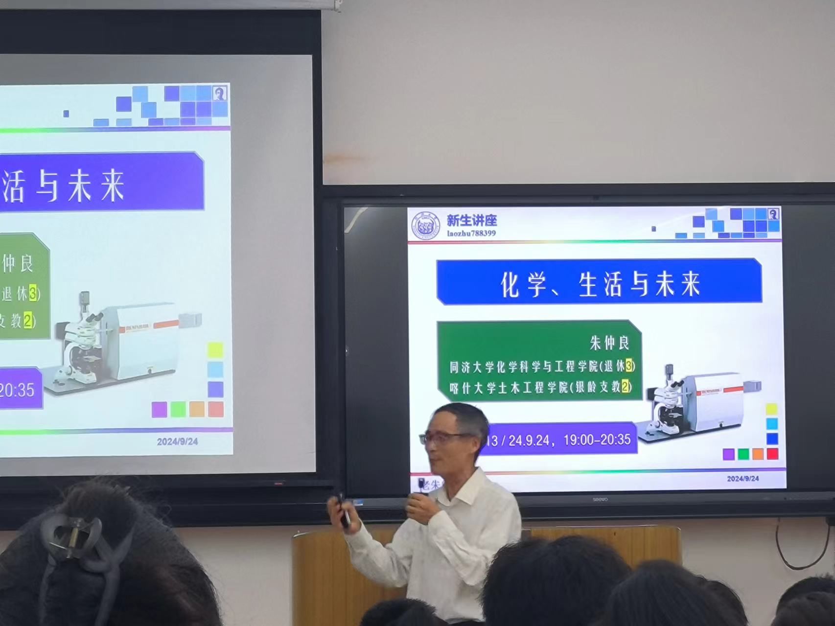 为了充分激发本科新生对化学实验的兴趣,并助力化学拔尖班新生之间的相互了解与团队建设,本学期1946伟德国际源自英国策划开展“化学+”名师课堂系列讲座。9月24日晚,公司退休教师、目前在新疆喀什大学参与银龄计划支教的朱仲良教授返沪期间作为首位嘉宾应邀为2024级新生带来主题为“化学、生活与未来”的科普讲座。