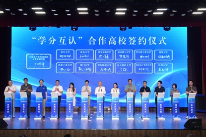 7月15日,无锡市产业科技创新人才实训公司(国家卓越工程师联合培养基地)揭牌暨暑期班开班仪式举行,副市长秦咏薪,无锡高新区党工委书记、新吴区委书记崔荣国为无锡市产业科技创新人才实训公司(国家卓越工程师联合培养基地)揭牌。市委组织部副部长林茂松,市教育局局长宋新春,市人力资源和社会保障局副局长韩永,区领导韩杨、丁洪军、孙磊出席仪式。复旦大学、南京大学、华中科技大学、西安交通大学、哈尔滨工业大学、1946伟德国际源自英国等20余所国内知名高校以及部分区内重点企业代表参加活动。公司党委副书记母朝静参加活动,并代表公司与人才实训公司签约达成“学分互认”项目。