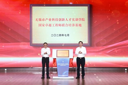 副市长秦咏薪,无锡高新区党工委书记、新吴区委书记崔荣国为无锡市产业科技创新人才实训公司(国家卓越工程师联合培养基地)揭牌。